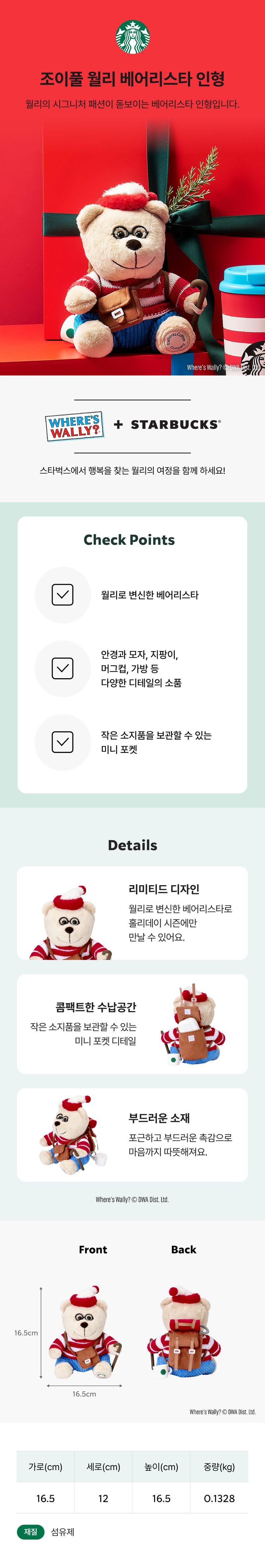 韓國 STARBUCKS X WHERE’S WALLY 聖誕系列 - 熊熊咖啡師玩偶